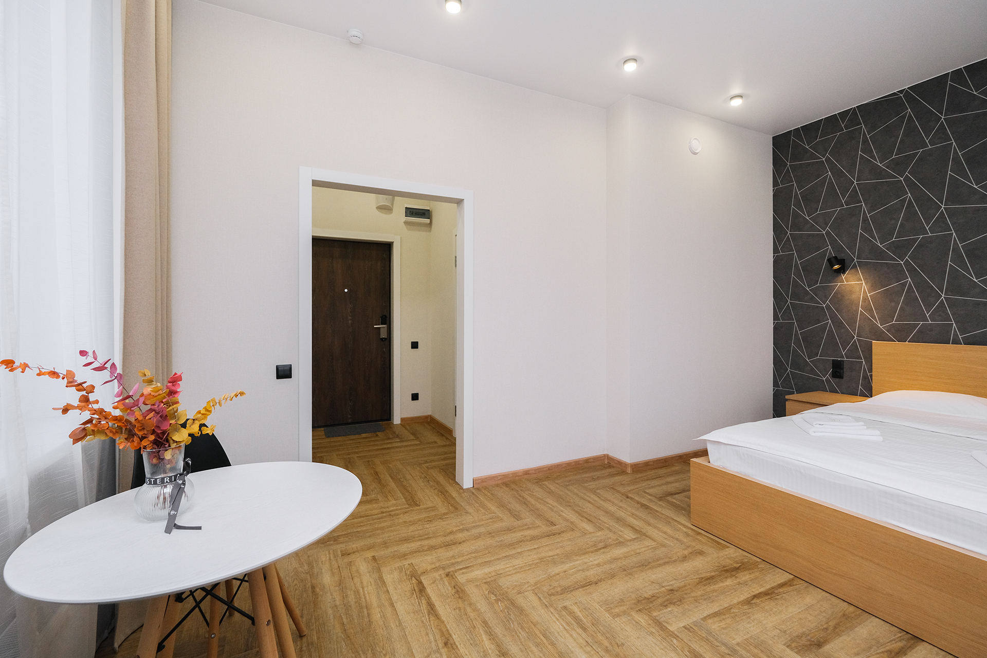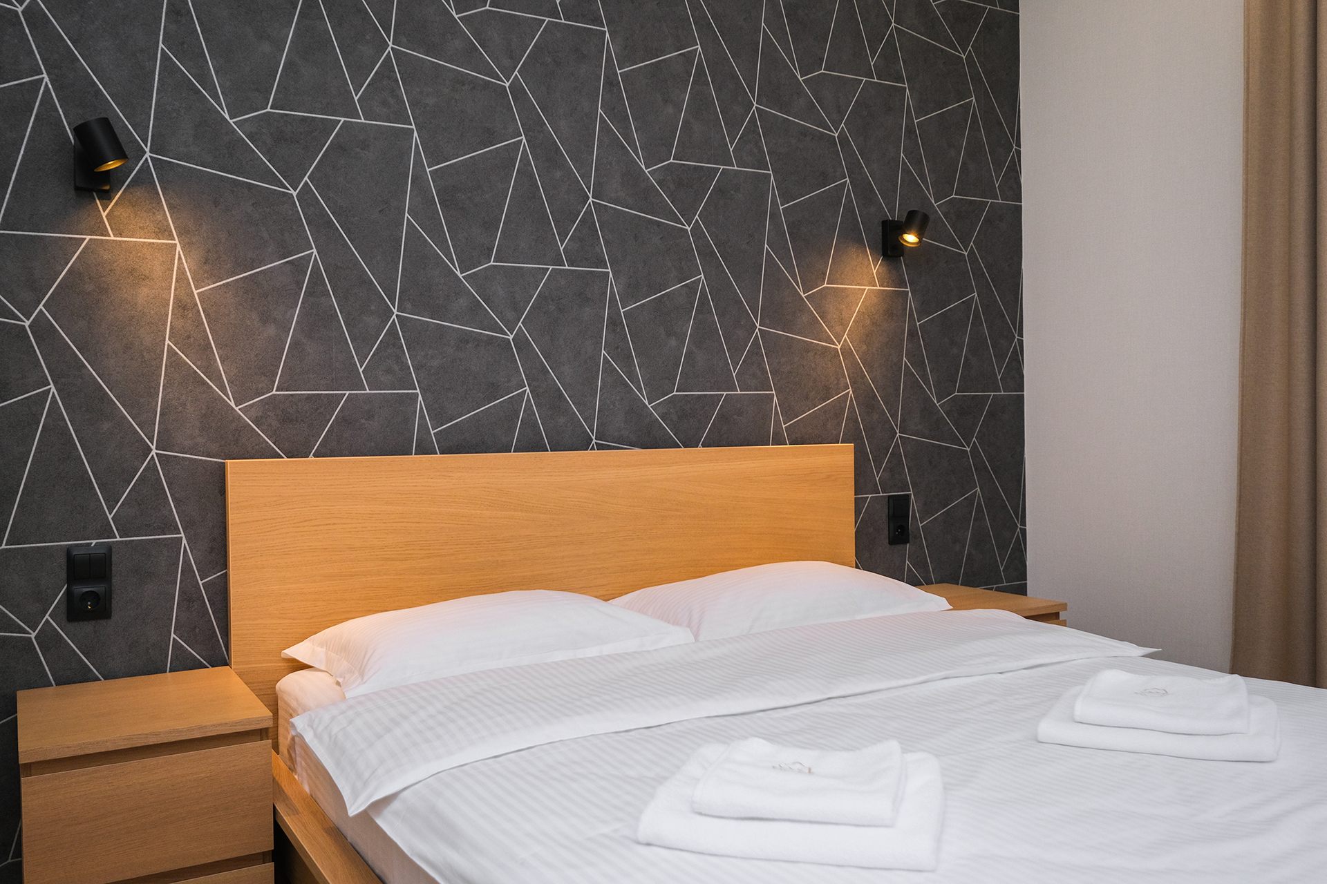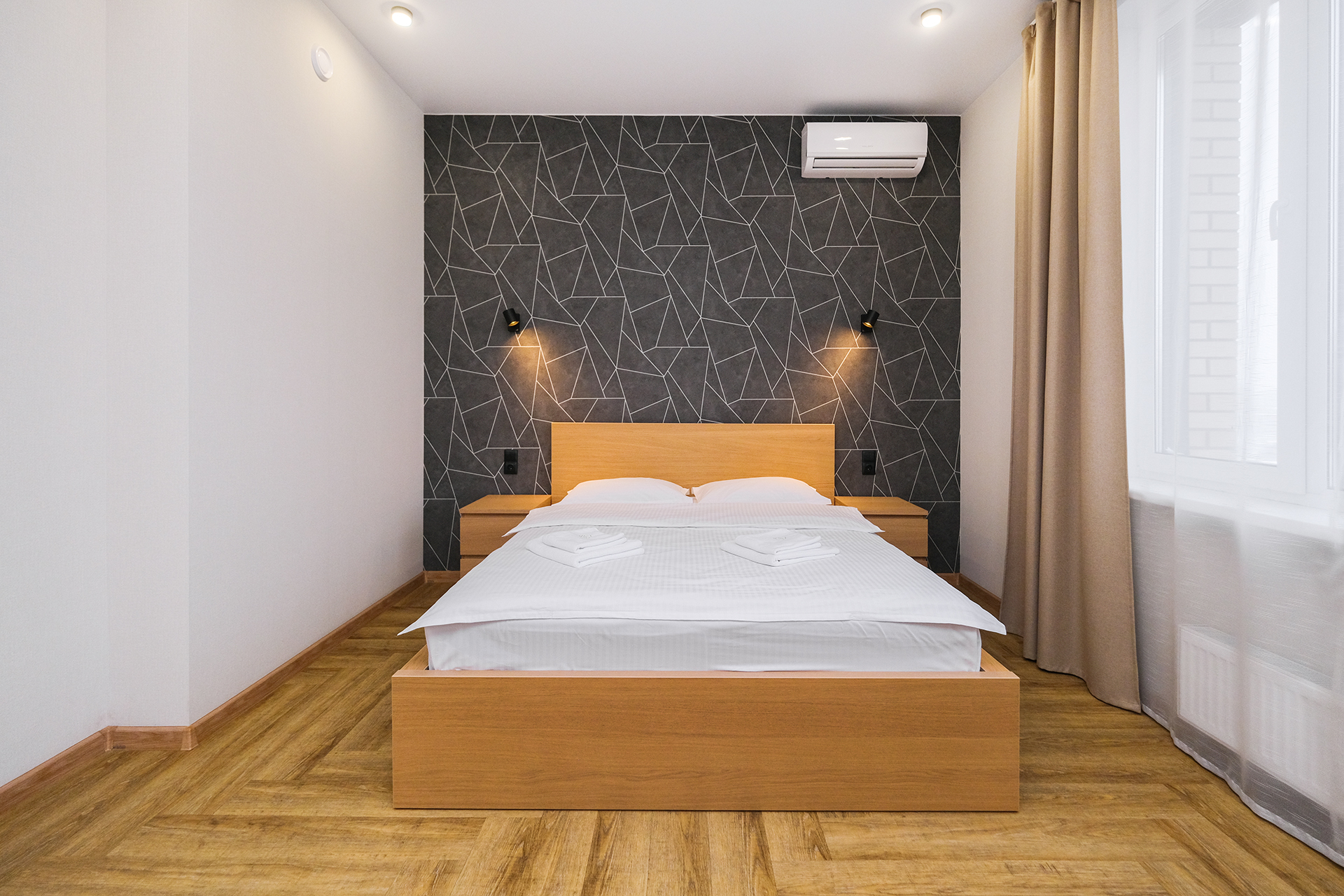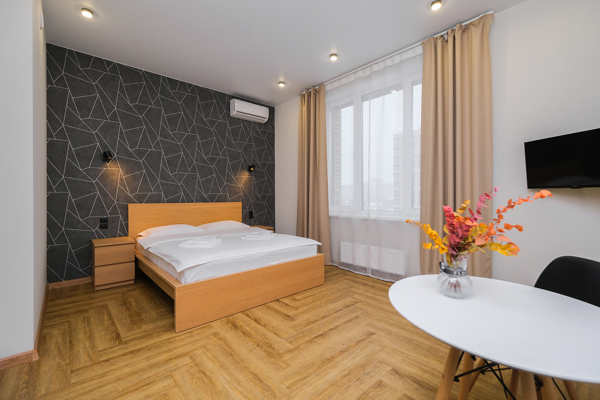Wi-Fi • Кондиционер • Двухспальная кровать 160x200 • Фен • Утюг • Парковка • Встроенная кухонная мебель • Электрическая плита • СВЧ-печь • Электрочайник