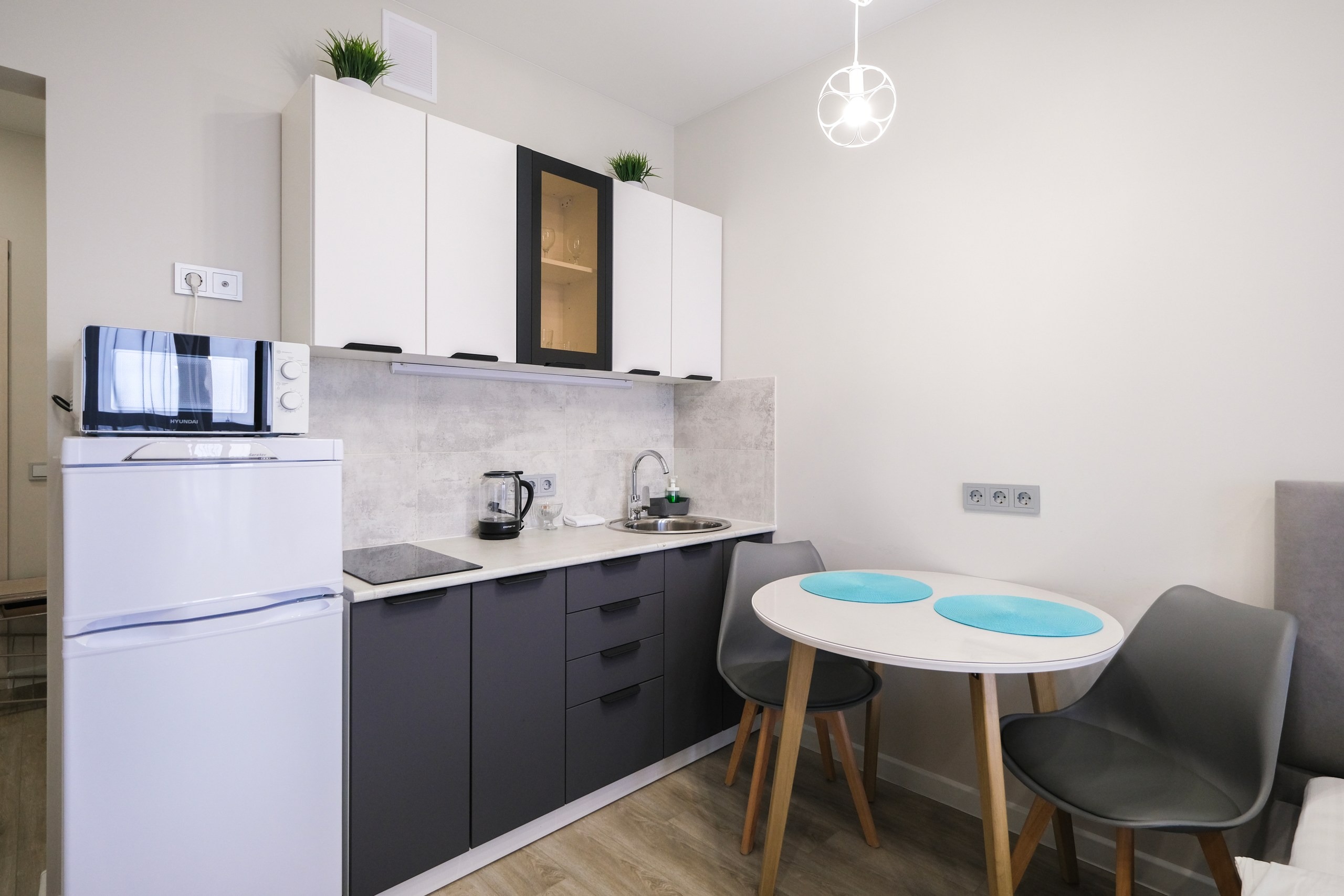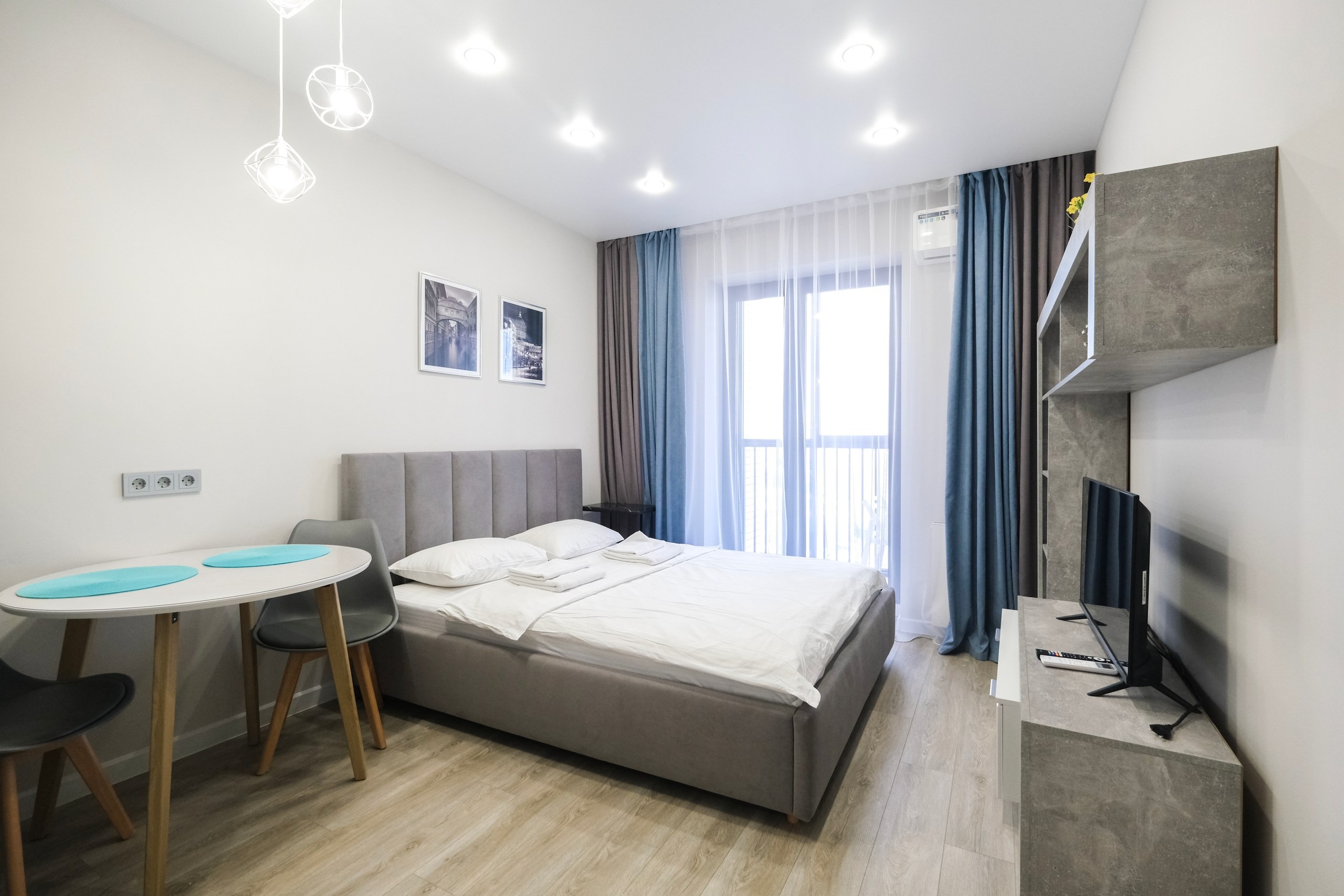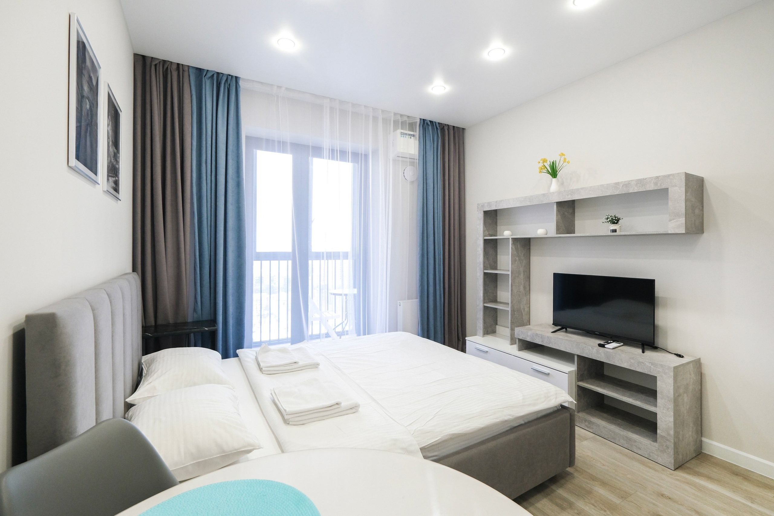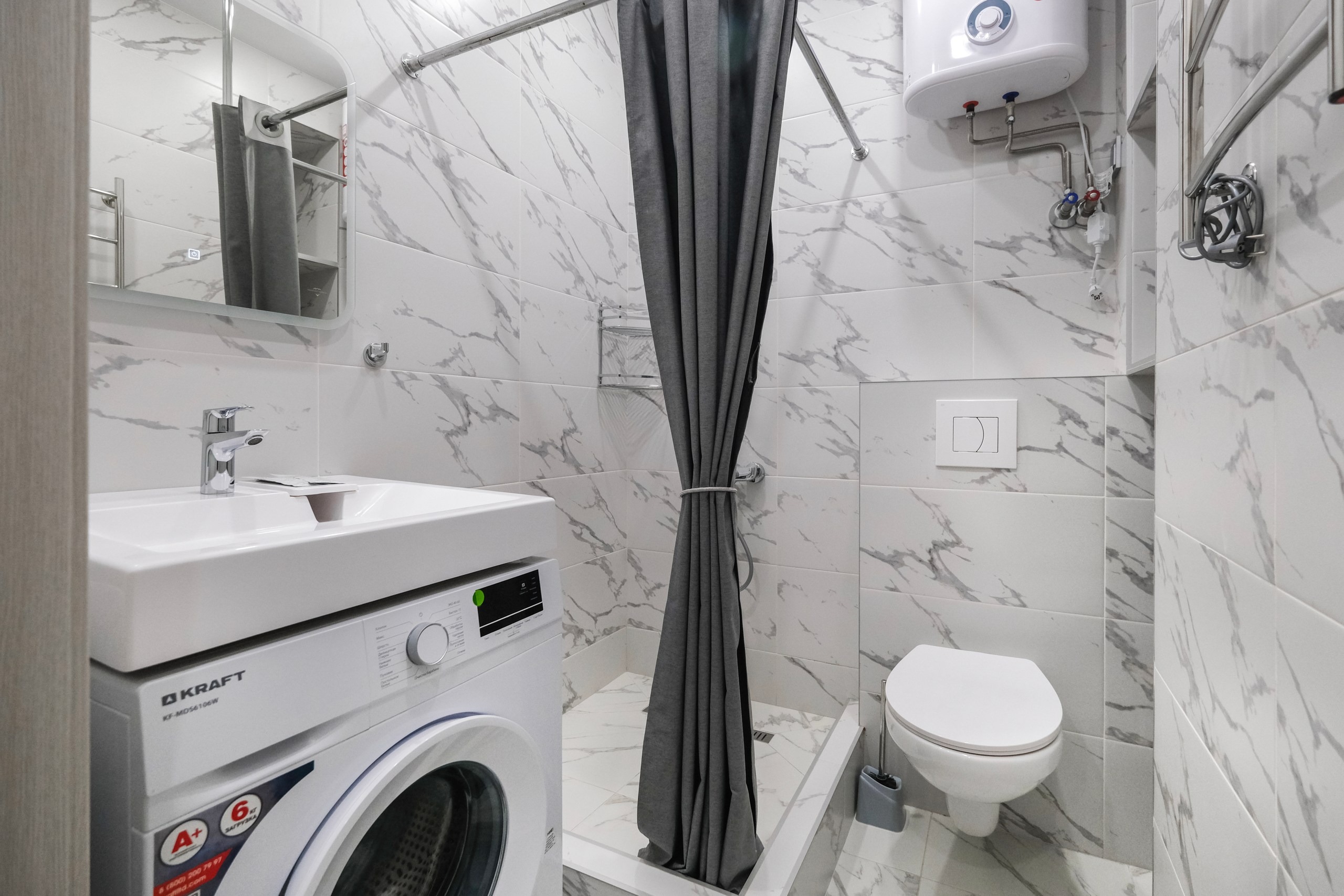 Wi-Fi • Кондиционер • Двухспальная кровать 160x200 • Фен • Утюг • Парковка • Встроенная кухонная мебель • Электрическая плита • СВЧ-печь • Электрочайник • Холодильник • Посуда • Гладильная доска • Обогреватель • Водонагреватель • Ванна • Стиральная машина • Смарт ТВ