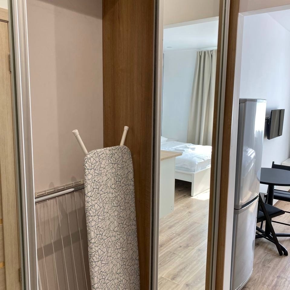Wi-Fi • Кондиционер • Двухспальная кровать 160x200 • Фен • Утюг • Парковка • Встроенная кухонная мебель • Электрическая плита • СВЧ-печь • Электрочайник • Холодильник • Посуда • Гладильная доска • Обогреватель • Водонагреватель • Ванна • Стиральная машина • Смарт ТВ