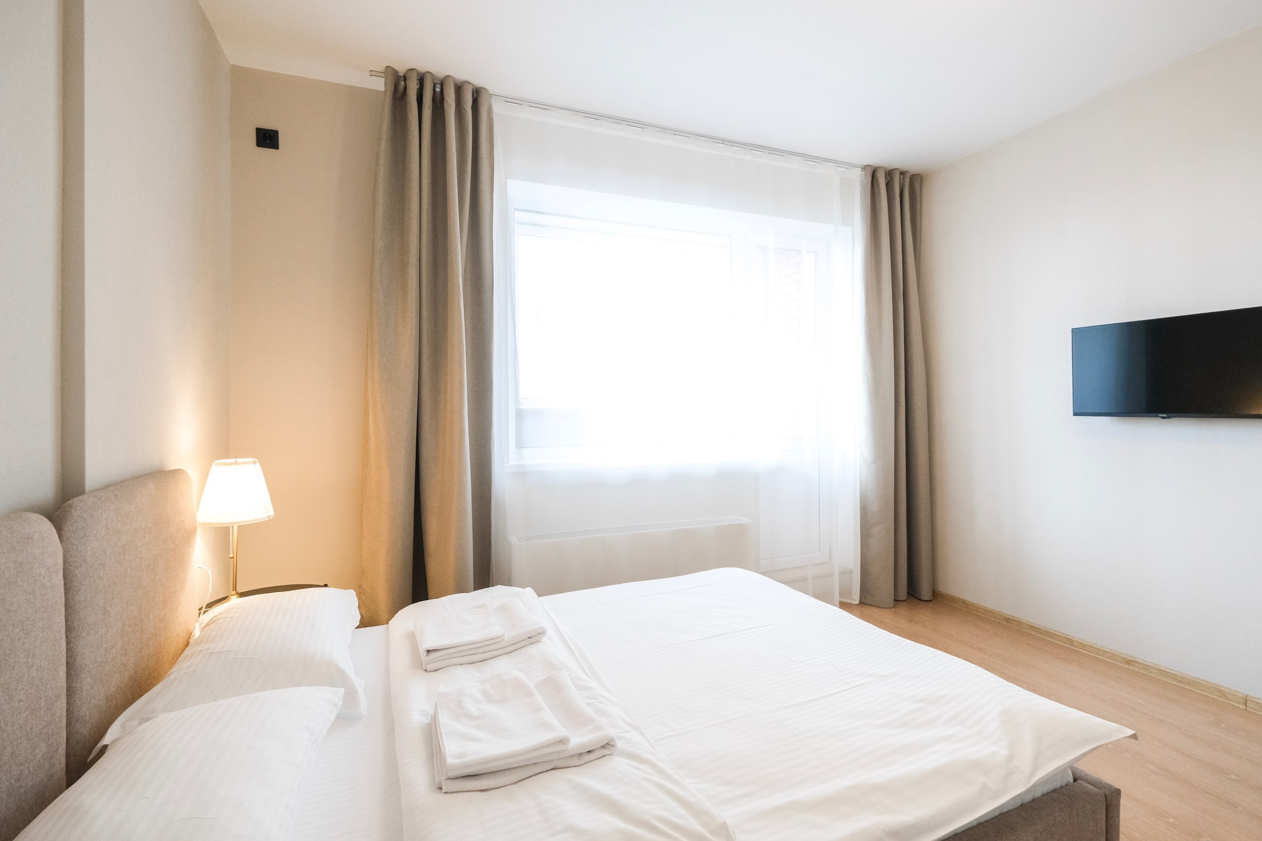 Wi-Fi • Кондиционер • Двухспальная кровать 160x200 • Фен • Утюг • Парковка • Встроенная кухонная мебель • Электрическая плита • СВЧ-печь • Электрочайник • Холодильник • Посуда • Гладильная доска • Обогреватель • Водонагреватель • Ванна • Стиральная машина • Смарт ТВ