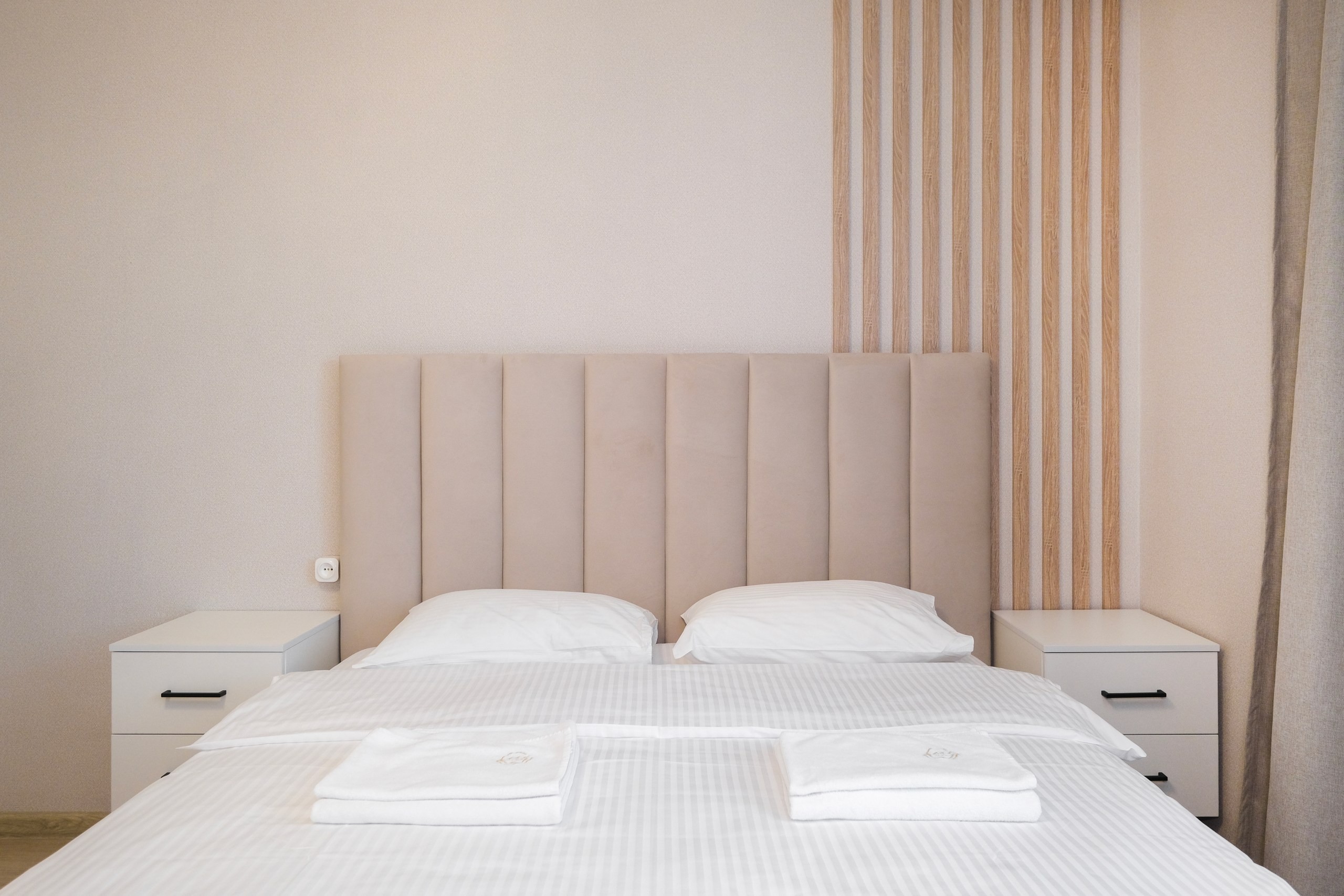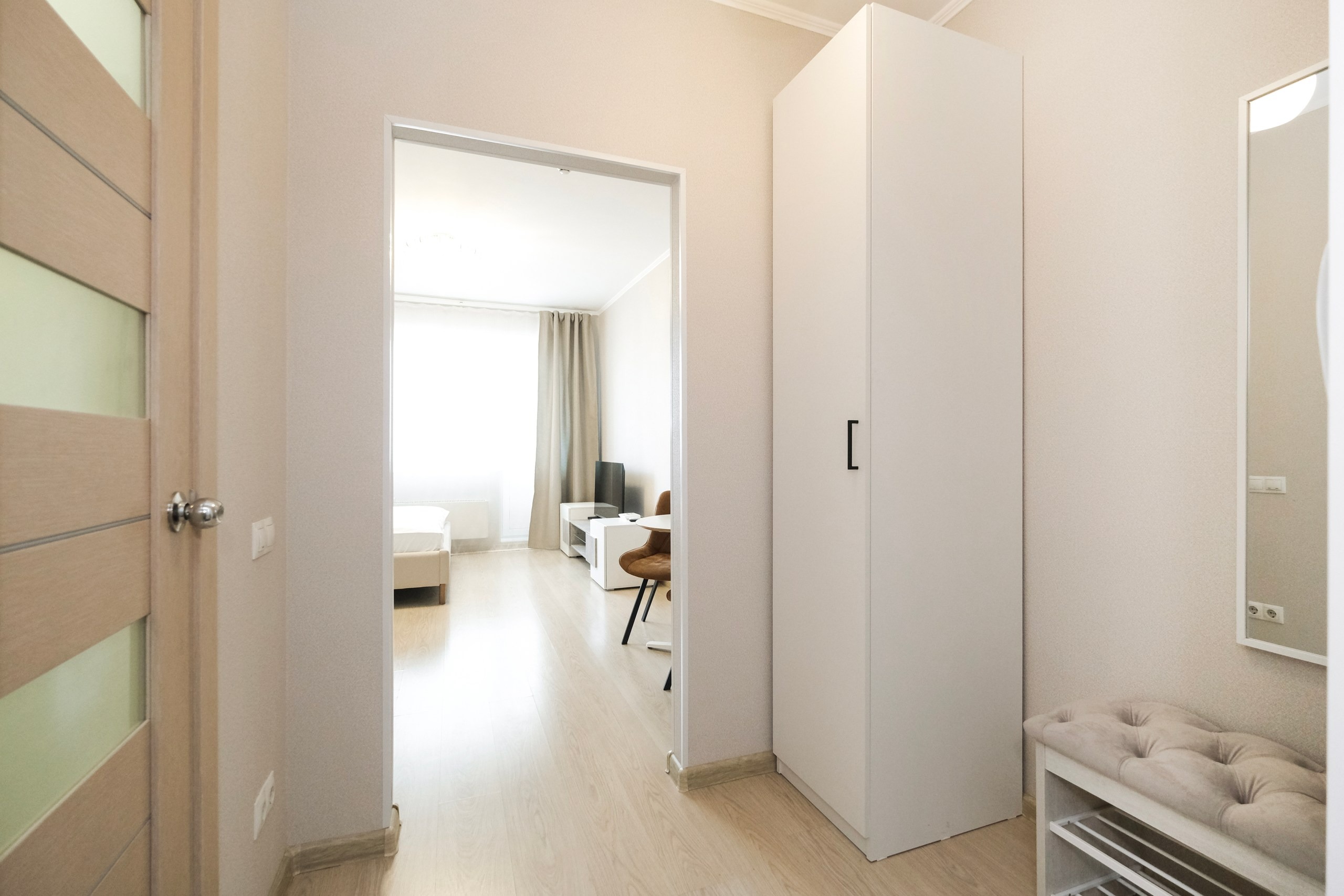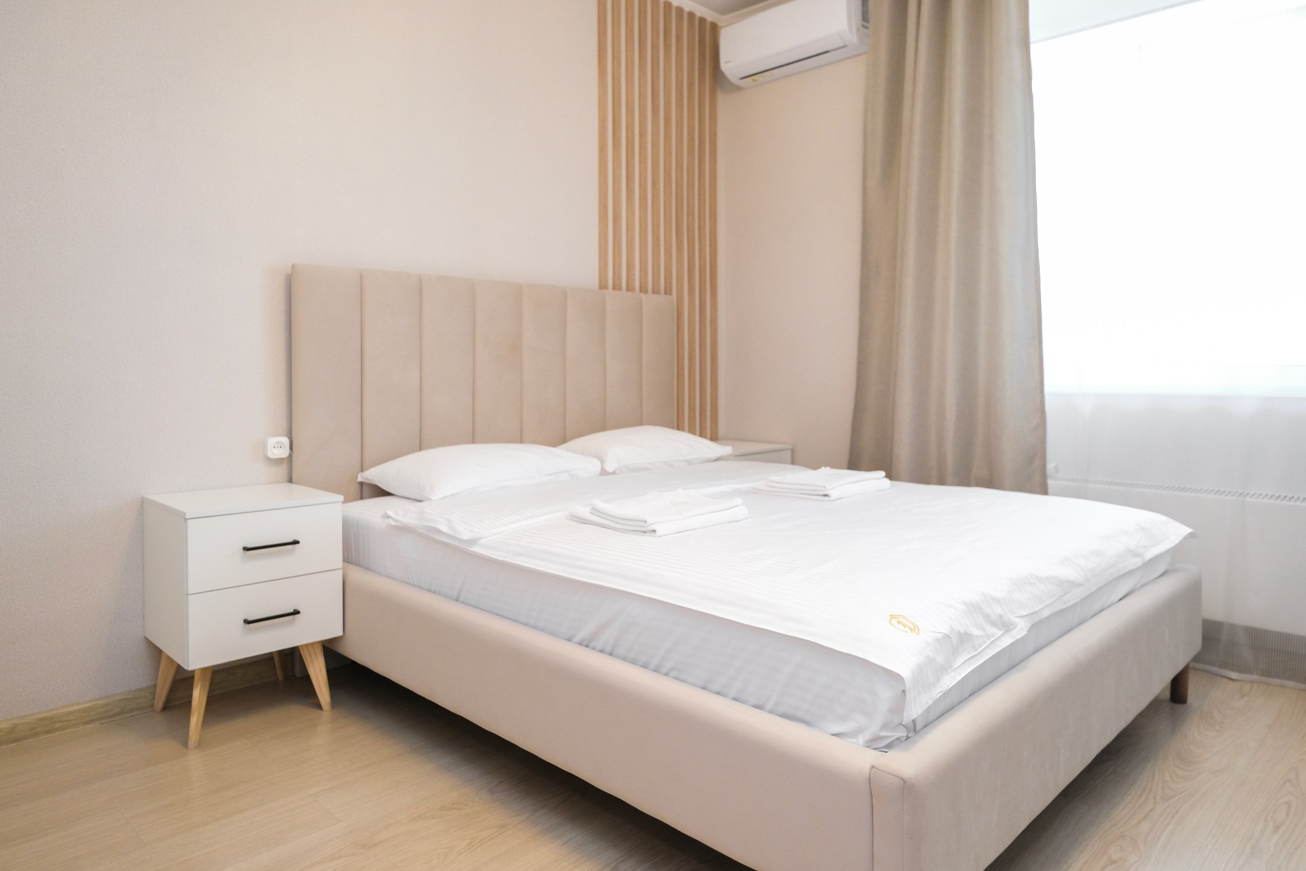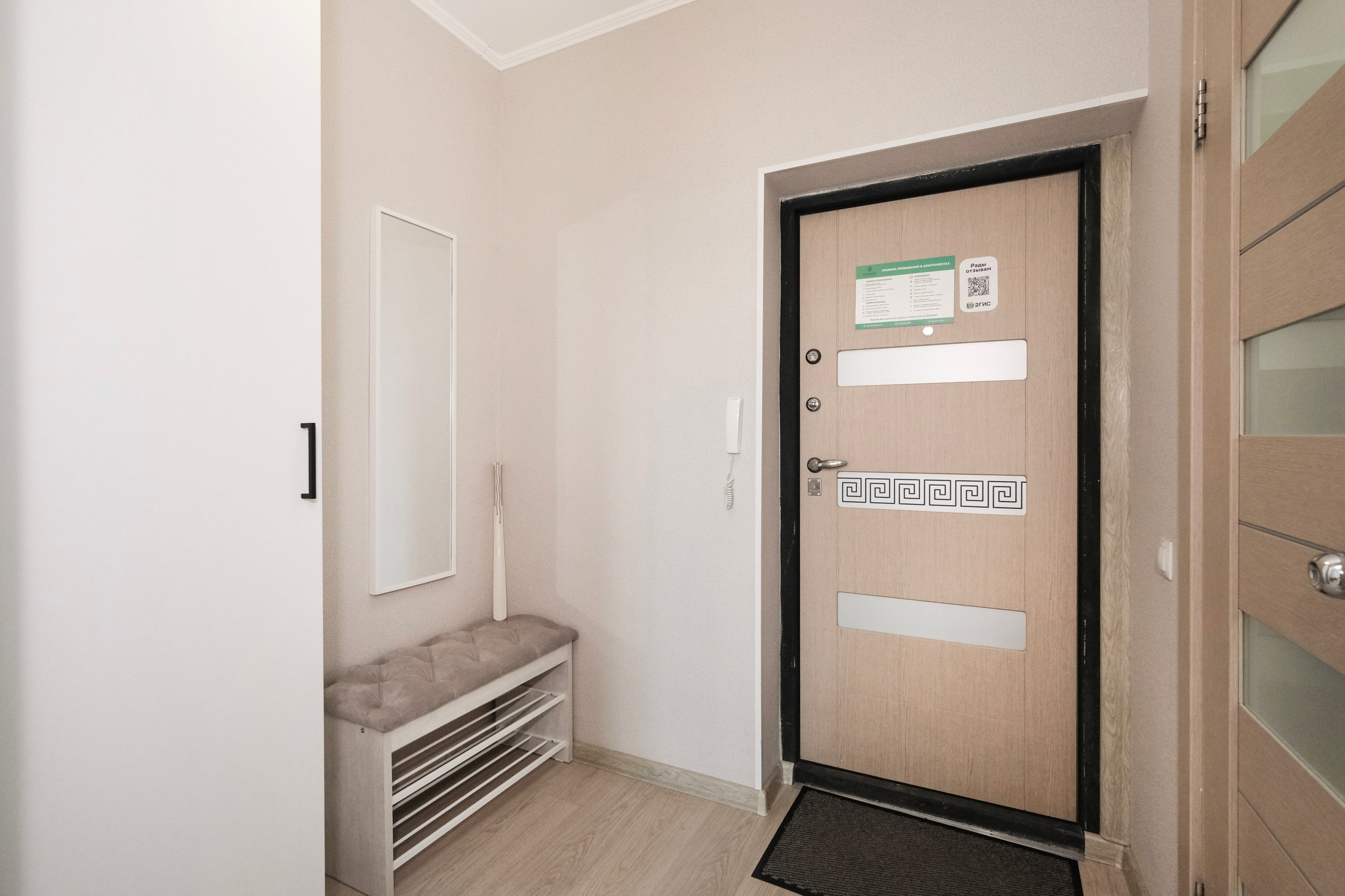 Wi-Fi • Кондиционер • Двухспальная кровать 160x200 • Фен • Утюг • Парковка • Встроенная кухонная мебель • Электрическая плита • СВЧ-печь • Электрочайник • Холодильник • Посуда • Гладильная доска • Обогреватель • Водонагреватель • Ванна • Стиральная машина • Смарт ТВ