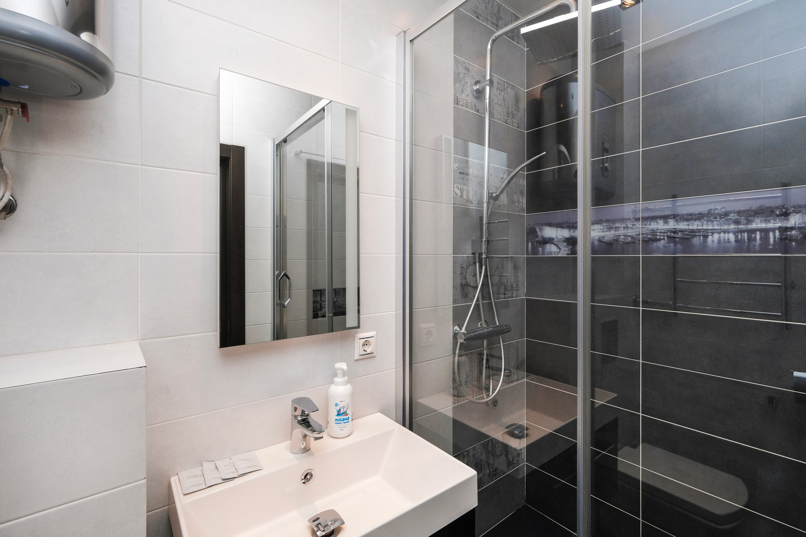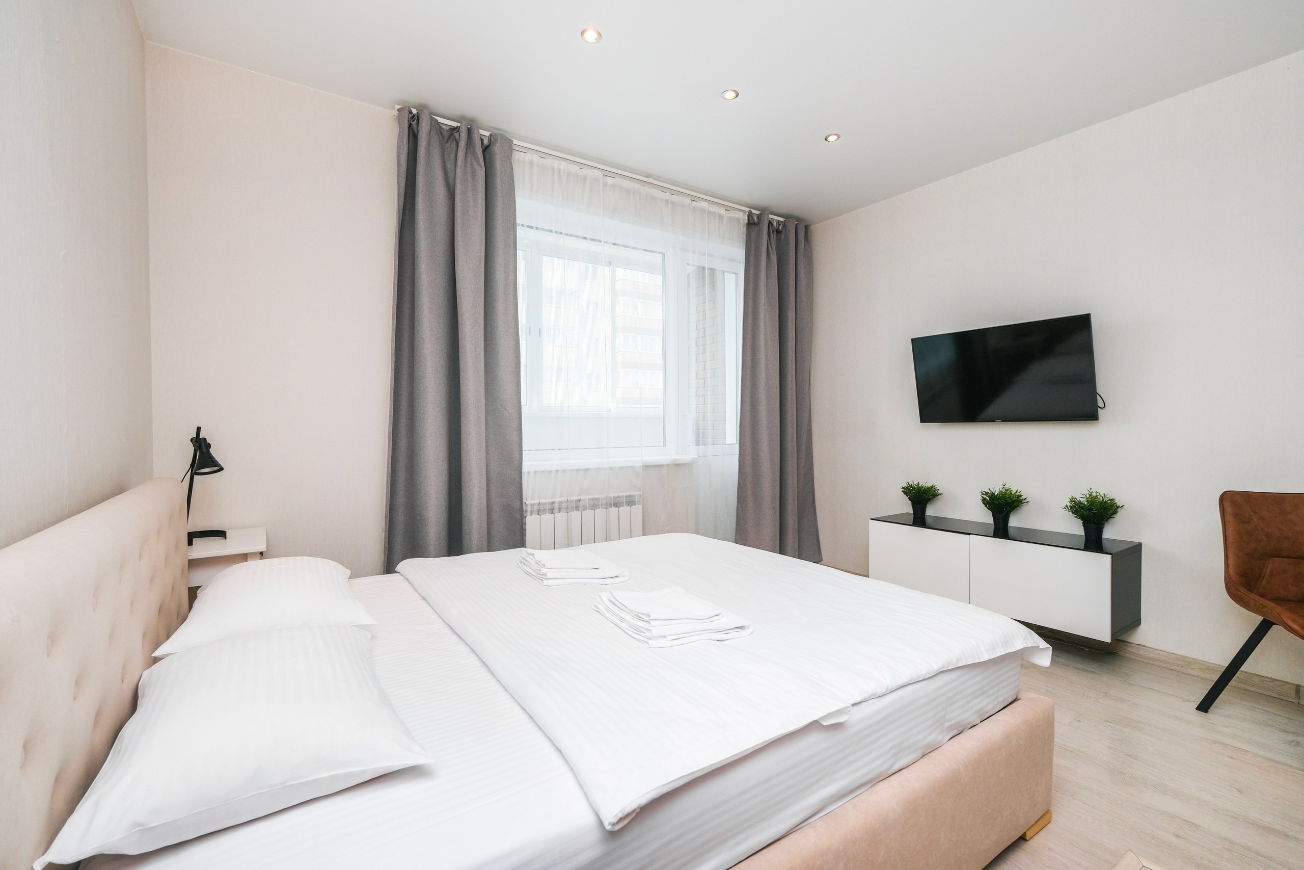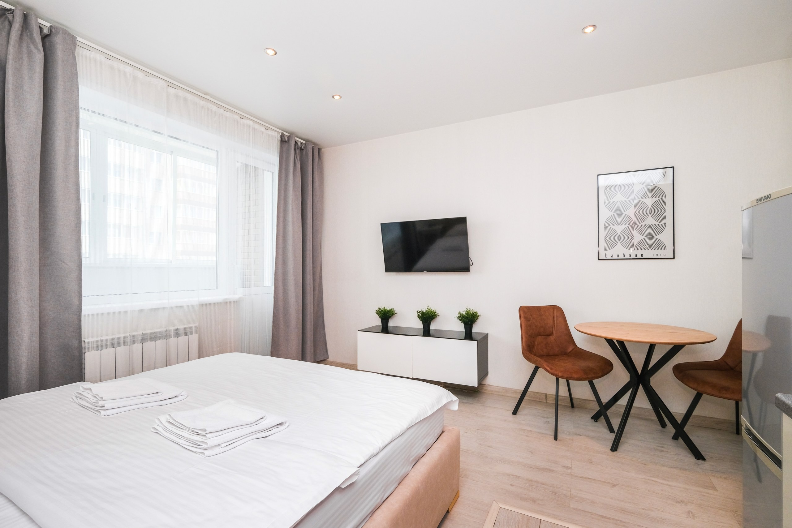 Wi-Fi • Кондиционер • Двухспальная кровать 160x200 • Фен • Утюг • Парковка • Встроенная кухонная мебель • Электрическая плита • СВЧ-печь • Электрочайник • Холодильник • Посуда • Гладильная доска • Обогреватель • Водонагреватель • Ванна • Стиральная машина • Смарт ТВ