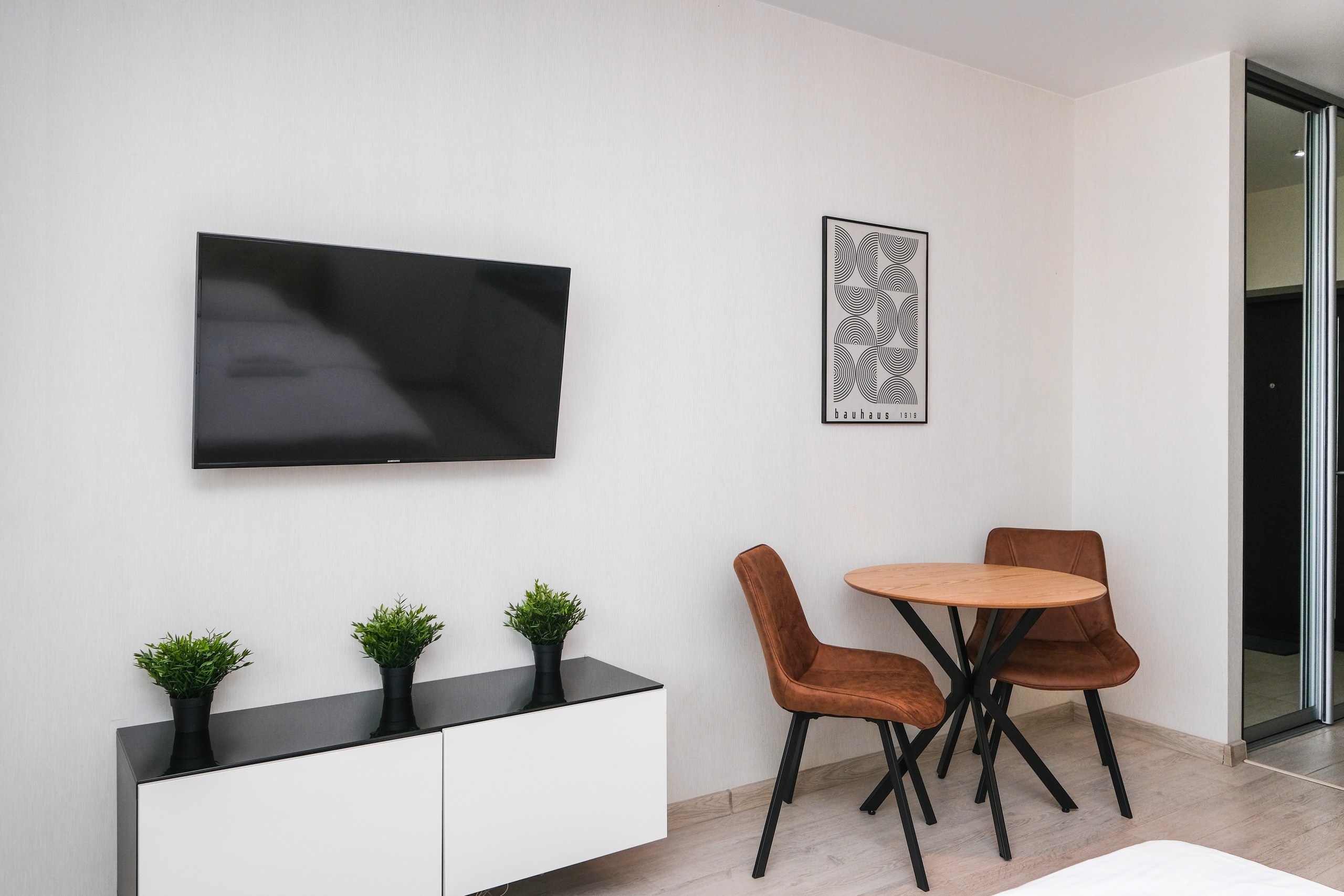 • Холодильник • Посуда • Гладильная доска • Обогреватель • Водонагреватель • Ванна • Стиральная машина • Кабельное TV • Смарт ТВ