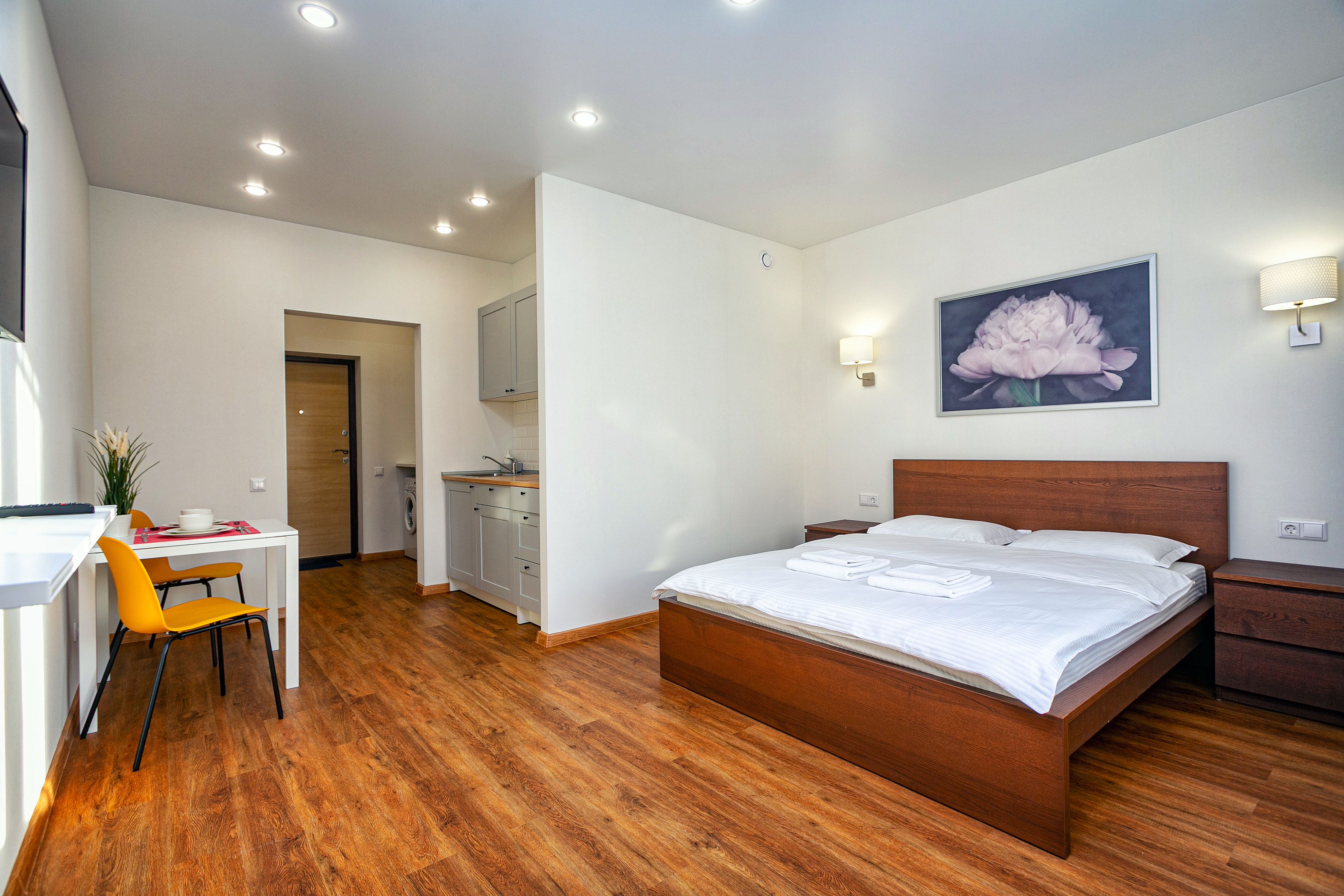 Wi-Fi • Кондиционер • Двухспальная кровать 160x200 • Фен • Утюг • Парковка • Встроенная кухонная мебель • Электрическая плита • СВЧ-печь • Электрочайник