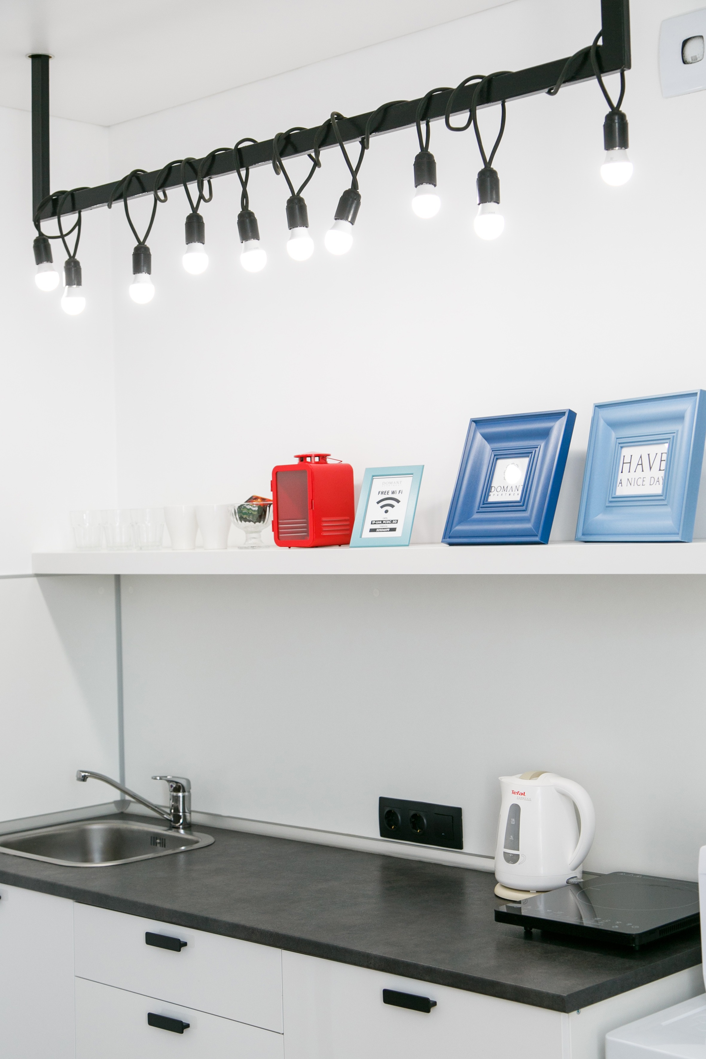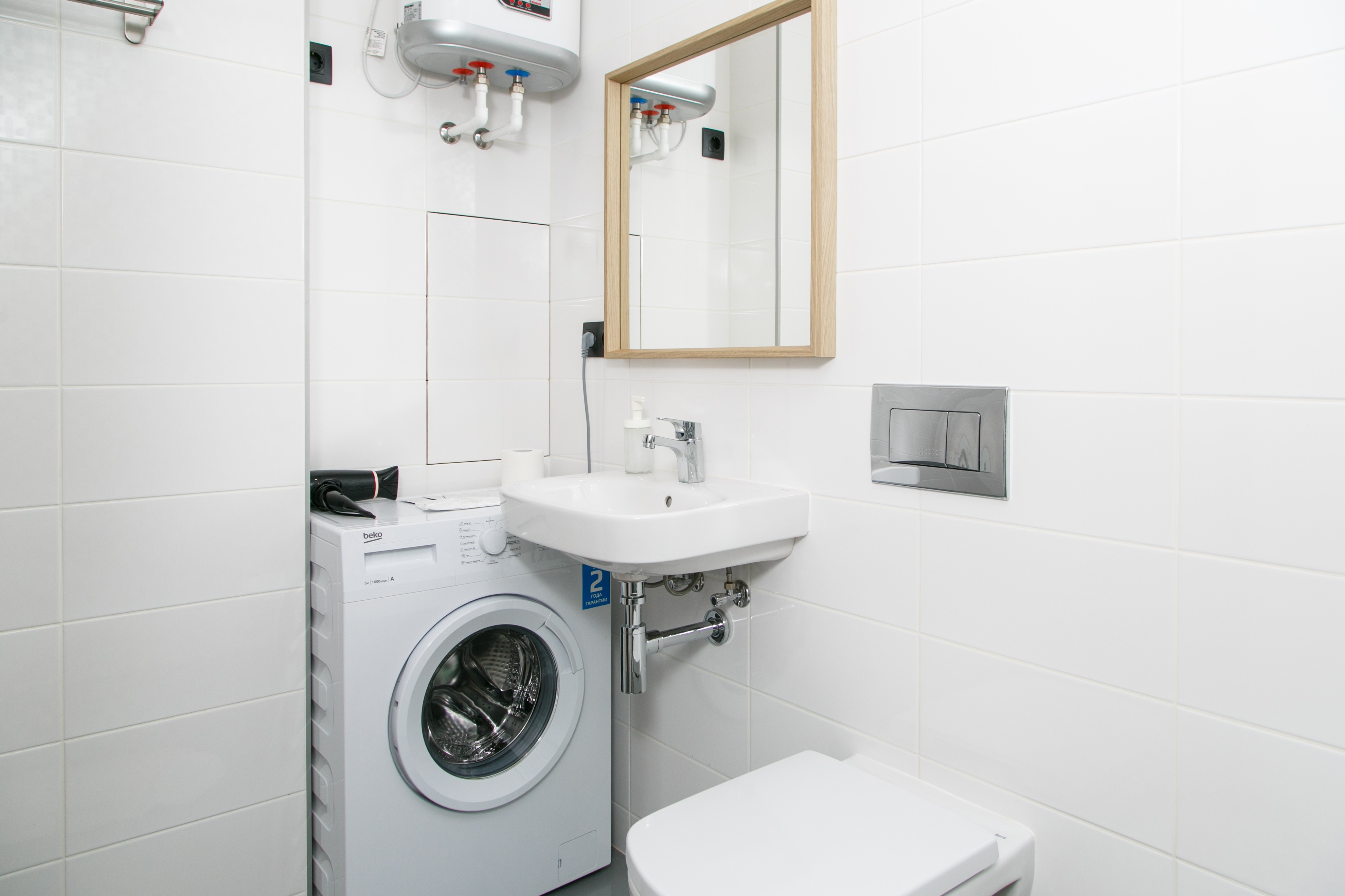 Wi-Fi • Кондиционер • Двухспальная кровать 160x200 • Фен • Утюг • Парковка • Встроенная кухонная мебель • Электрическая плита • СВЧ-печь • Электрочайник • Холодильник • Посуда • Гладильная доска • Обогреватель • Водонагреватель • Ванна • Стиральная машина • Смарт ТВ